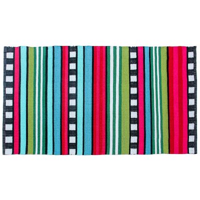 Show your stripes with this indoor/outdoor, 3′ x 5′ rug made of woven PET fibers created from recycled plastic. Durable and water-resistant, it can be used indoors or outdoors in a shaded or covered area with limited direct exposure to sunlight.