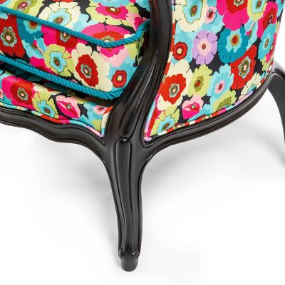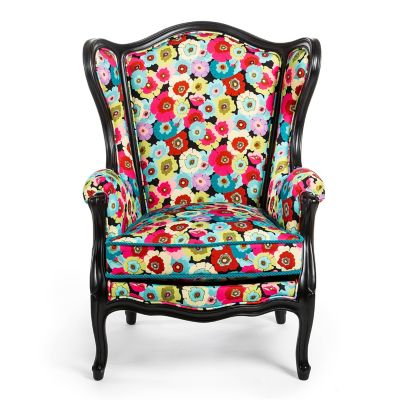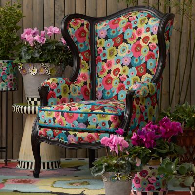 Elevate your porch or patio with this statement-making outdoor wing chair. It’s upholstered in a blooming floral outdoor fabric and set on a rugged-yet-chic steel frame coated in black resin.