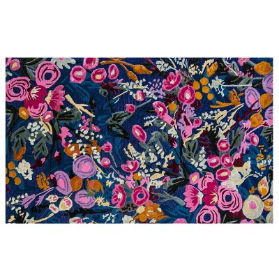 Put on a floral floor show with this vibrantly colored, wool-blend, 5′ x 8′ rug that combines tufting and shearing to add dimension.