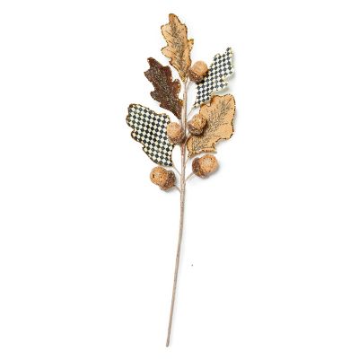 Add a bit of autumn to wreaths and arrangements with this acorn spray, featuring oak leaves made of burlap and Courtly Check®, with two large glitter-encrusted acorn accents.