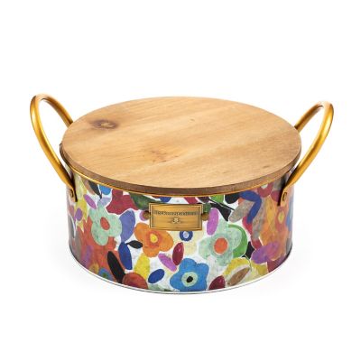 Keep the bugs at bay with our Large Avant Garden Citronella Candle. This galvanized metal container, decorated with our Avant Garden pattern, is filled with a blend of paraffin and citronella, and has three wicks. It’s topped with a wooden lid that provides protection from the elements, so you can keep any debris out of the wax when not in use.