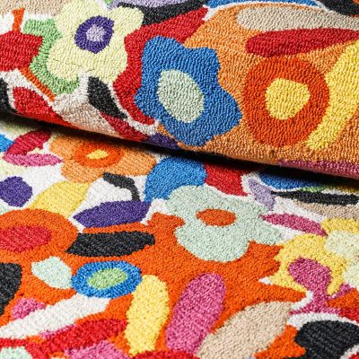 Why trade durability for fashion? The 2’3″ x 3’9″ Avant Garden Indoor/Outdoor Rug offers both. Made of hand-tufted polyester, it features colorful blooms with a striped black and white border. It can be used indoors or outdoors in a shaded or covered area with limited direct exposure to sunlight. It’s the perfect complement to our collection of Avant Garden Outdoor Furniture.