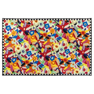 Why trade durability for fashion? The 2’3″ x 3’9″ Avant Garden Indoor/Outdoor Rug offers both. Made of hand-tufted polyester, it features colorful blooms with a striped black and white border. It can be used indoors or outdoors in a shaded or covered area with limited direct exposure to sunlight. It’s the perfect complement to our collection of Avant Garden Outdoor Furniture.