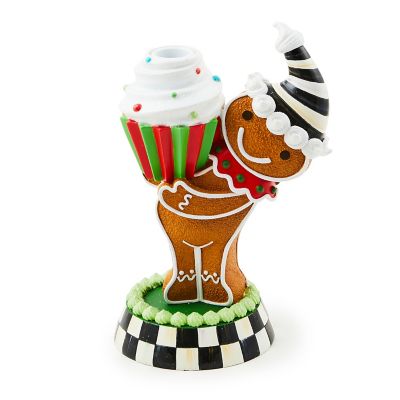 Bake holiday spirits bright with this hand-painted gingerbread candle holder, accented with Courtly Check® and Stripe, which holds one of our dinner candles (not included).