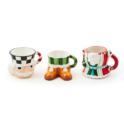 Stand at attention for this set of three nutcracker stacking mugs that are perfect for your hot cocoa station. Three hand-painted red and green ceramic mugs with faux frosted icing trim stack to form a nutcracker that’s accented with gold lustre.