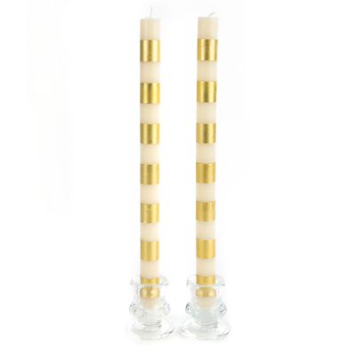 Turn your everyday meals into something more memorable with our Gold Bands Dinner Candles. They feature a fun and fresh hand-painted pattern of horizontal stripes that add the glowing touch of MacKenzie-Childs to your dining table. This set of two beeswax-blend candles will cast a lovely lustre on your table for up to 10 hours.