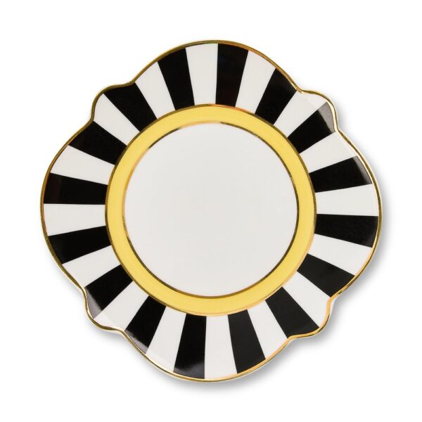 We’re aflutter for this Bee Toile Mug & Saucer Set, featuring a pattern of black and white toile on the mug with a bee-shaped handle atop a striped saucer. Both pieces are trimmed with gold lustre.