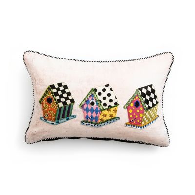 An embroidered trio of our Home Tweet Homes on a cotton-linen front accentuate the Bird House Lumbar Pillow. The finishing touch is twisted black and white cording.