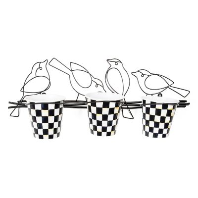 Birds of a feather flock together on this wire plant holder that accommodates three metal Courtly Check® pots.