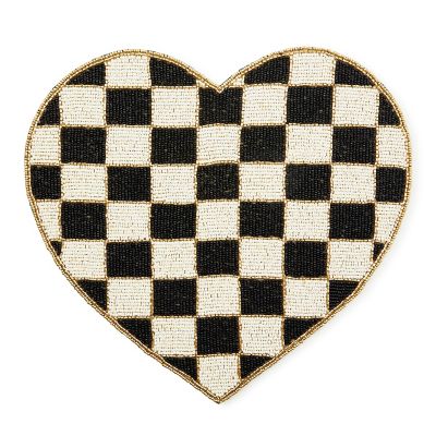 We just love how this black and white heart-shaped placemat, embellished entirely in beads, adds sparkle to the table. XO XO XO!