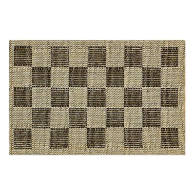 Put on a floor show with this 2′ x 3′ indoor/outdoor rug, featuring a woven polyester pattern of black checks. It can be used indoors or outdoors in a shaded or covered area with limited direct exposure to sunlight.