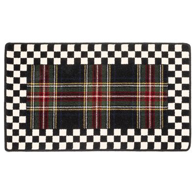 This wool-blend 2’3″ × 3’9″ black tartan rug is woven in Scotland, using the Axminister method, which is known for superior durability that comes from interweaving the pile and backing.