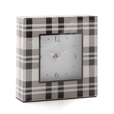 Give new meaning to “watching the clock” with this sleek timepiece, featuring tartan printed under glass, trimmed with beveled edges.