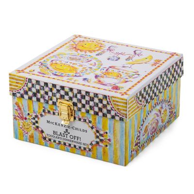 Make mealtime fun with our happy designs. Each toddler’s dinnerware set is delightfully gift packaged (including a BPA-free melamine sectional plate, bowl, two-handled sippy cup, fork, and spoon), with a solar system theme that’s sure to please.