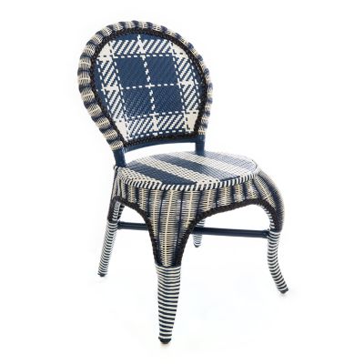 Take wicker up a notch with our Boathouse Outdoor Cafe Chair, a versatile piece that’s perfectly proportioned for our Boathouse Outdoor Cafe Table. The chair is fashioned in a brightly bold geometric plaid and stripe pattern done in navy and white resin wicker that’s wrapped on a PVC frame.