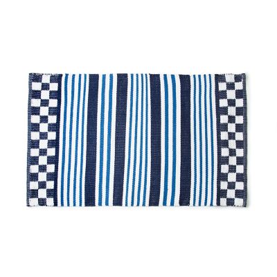 Take a deep dive into blue with our 2′ x 3’4″ Boathouse Outdoor Striped Rug. Crafted of woven vinyl, it features blue stripes with check borders. Durable and water-resistant, it can be used indoors or outdoors in a shaded or covered area with limited direct exposure to sunlight. It’s the perfect complement to our Boathouse Outdoor Furniture collection.