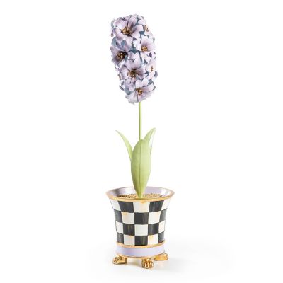 Spring ahead with this everlasting arrangement of metal hyacinths set in a hand-painted Courtly Check® base that’s trimmed with goldleaf roping.