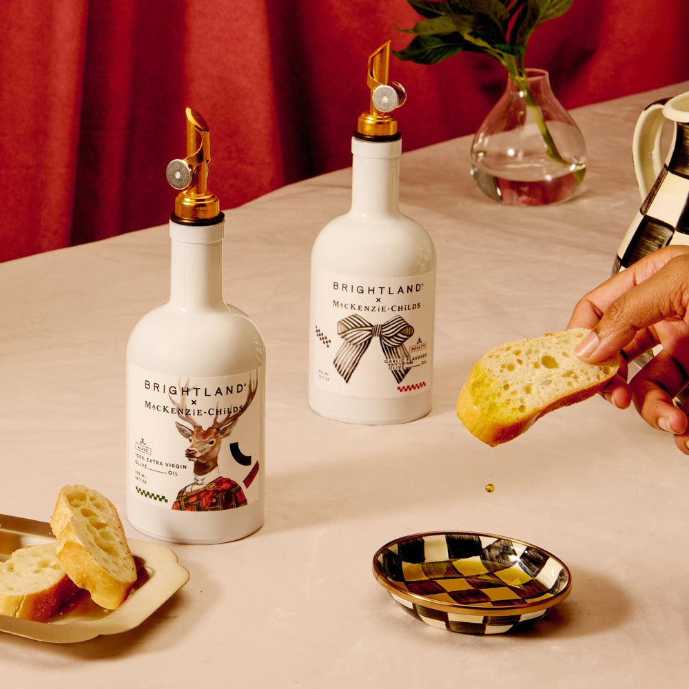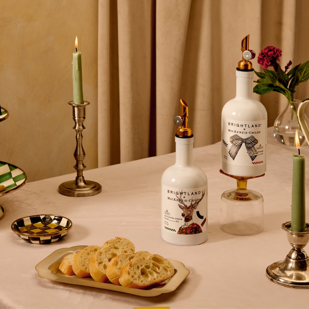 Celebrate the season with this holiday 2025 limited-edition Brightland collaboration—a joyful fusion of MacKenzie-Childs’ heirloom-worthy charm and Brightland’s modern California glow. This set features two of Brightland’s signature Alive Extra Virgin Olive Oil and Rosette Garlic Flavored Olive Oil, dressed in exclusive artwork and paired with our beloved Courtly Check Dipping Bowl, our Holiday Hosting Gift Set is perfect for gifting to your favorite host, food lover, or for elevating your own holiday table.