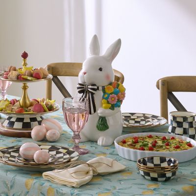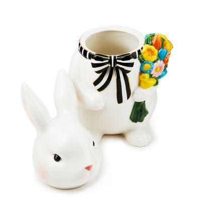 Celebrate spring with a ceramic bunny cookie jar that can hold plenty of sweet treats. This dapper fellow bears a bouquet of florals and sports a striped bow tie that’s accented with gold lustre.