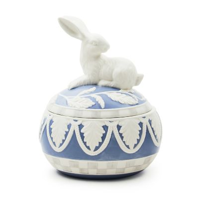 Fill this hand-painted ceramic lidded box with a treasure to share. It’s shaped like an egg with Wedgwood-inspired detailing that’s trimmed with Sterling Check® and topped with a bunny on the lid.