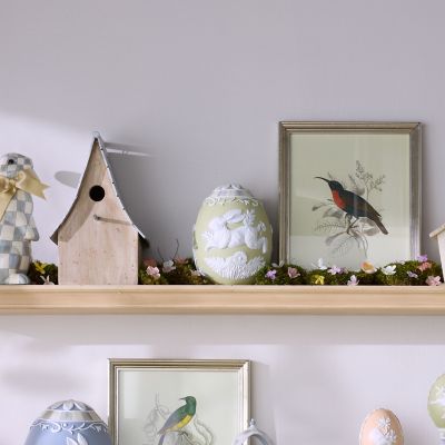 Make spring egg-ceptional with this large pale green egg featuring a running rabbit that’s decorated with Wedgwood-inspired detailing and trimmed with Sterling Check®.