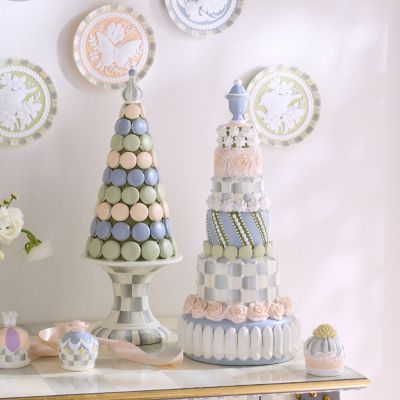 This multilayered cake takes, well, the cake! Made of hand-painted resin, it’s decorated with faux lady fingers, roses, Sterling Check®, and more. Sure to make a statement wherever it’s placed.