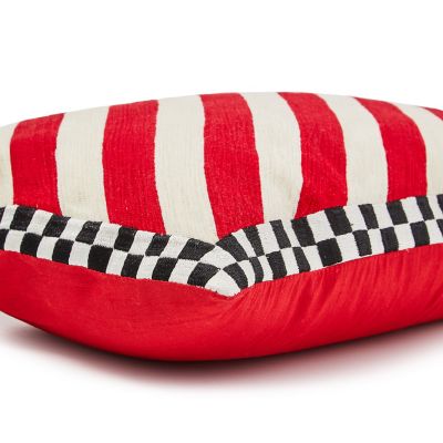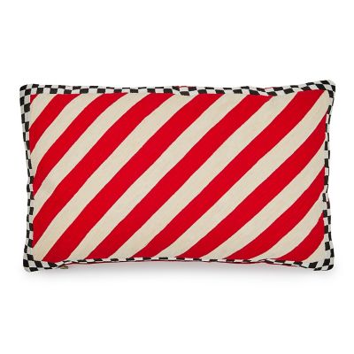 Add comfort and joy to your holiday home with this lumbar pillow, featuring a candy stripe print done in chainstitching and finished with a check border.