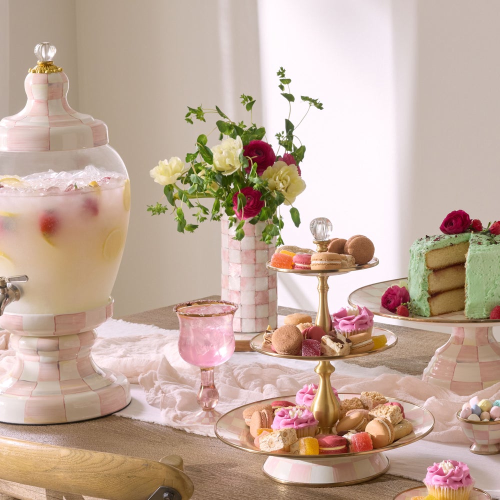 Present your prettiest posies in the Rosy Check® Capiz Small Vase. It’s made of glass with an inlaid pattern of pink checks on capiz.