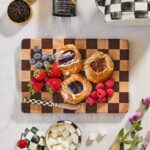 Keep a smart, sophisticated Check Chop Board out for countertop beautification or to chop fruits and veggies in style at a moment’s notice. The check pattern comes from a mix of acacia and rubberwood.