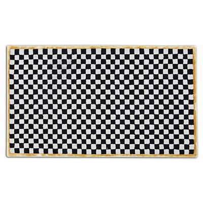 The 3′ × 5′ Gold Check It Out Rug is the perfect check mate to so many of our collections. This wool-blend rug has a center of hooked black and white checks with a gold tufted border.
