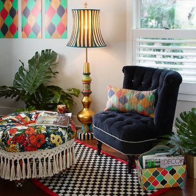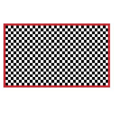 The 3′ × 5′ Red Check It Out Rug is the perfect check mate to so many of our collections. This wool-blend rug has a center of hooked black and white checks with a red tufted border.