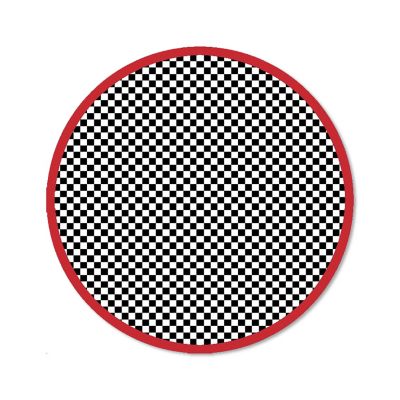 The 6′ Round Red Check It Out Rug is the perfect check mate to so many of our collections. This wool-blend rug has a center of hooked black and white checks with a red tufted border.