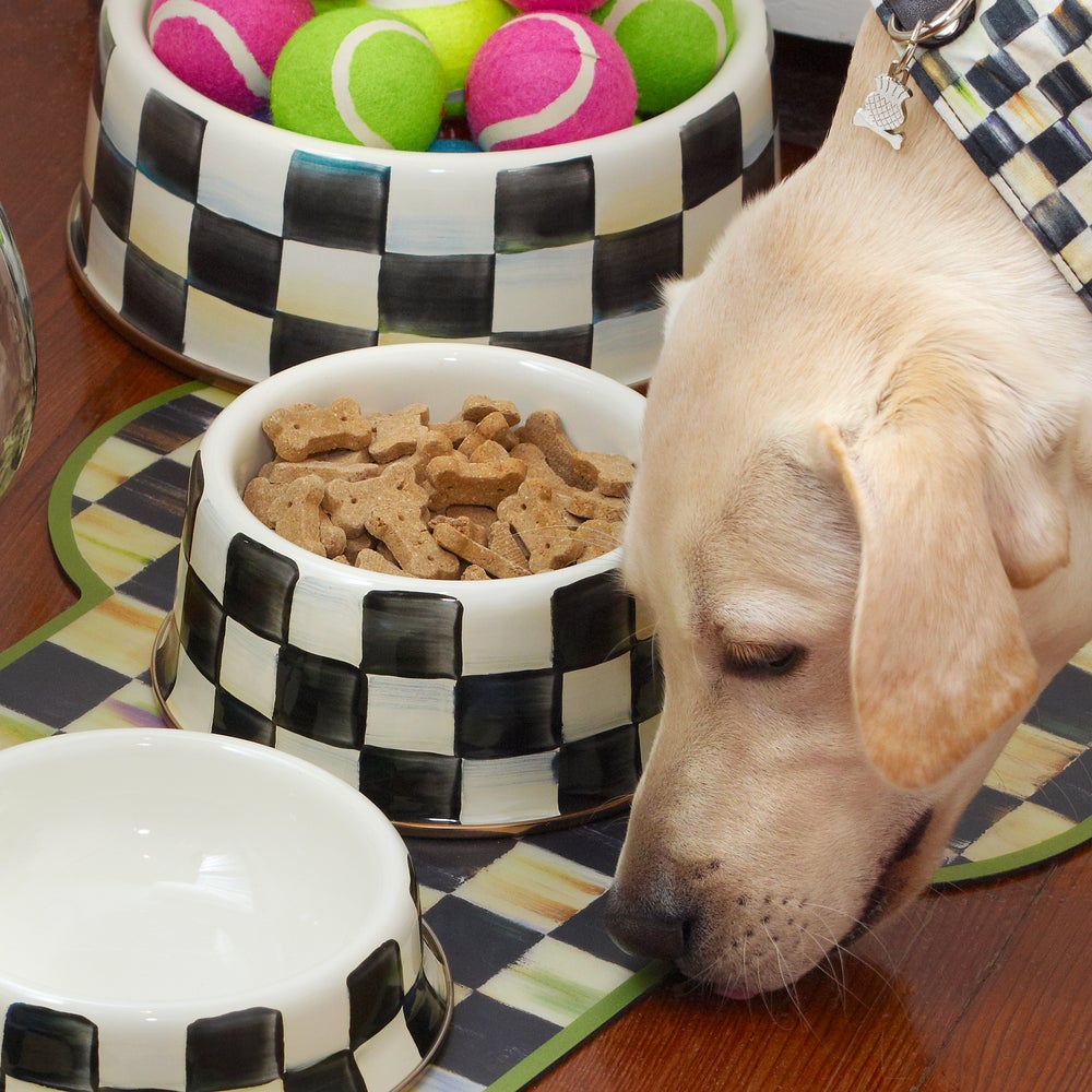 Our Check Pet Dish is hand-painted, with a heavy-gauge steel underbody and bronzed stainless steel rim.