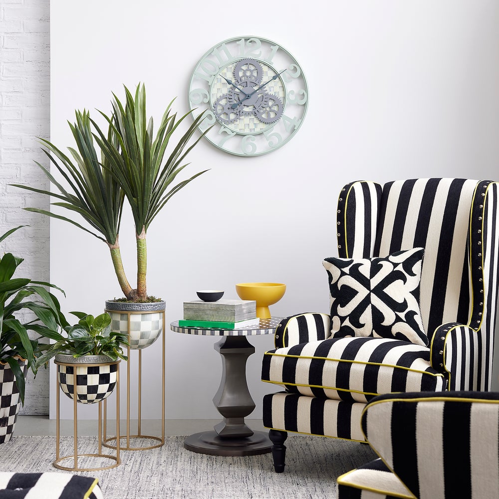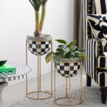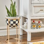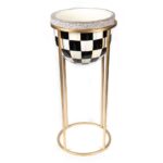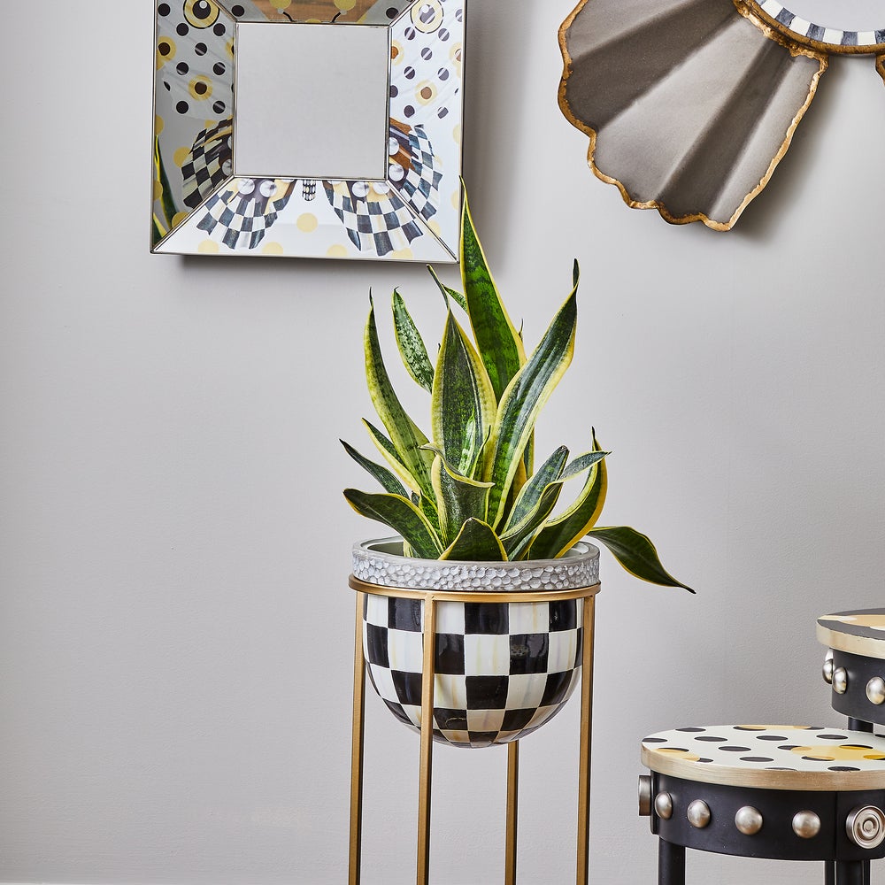 Display your plants with MacKenzie-Childs style in our Check Plant Stand. Includes a hand-painted check pot that fits into an accompanying short metal stand.
