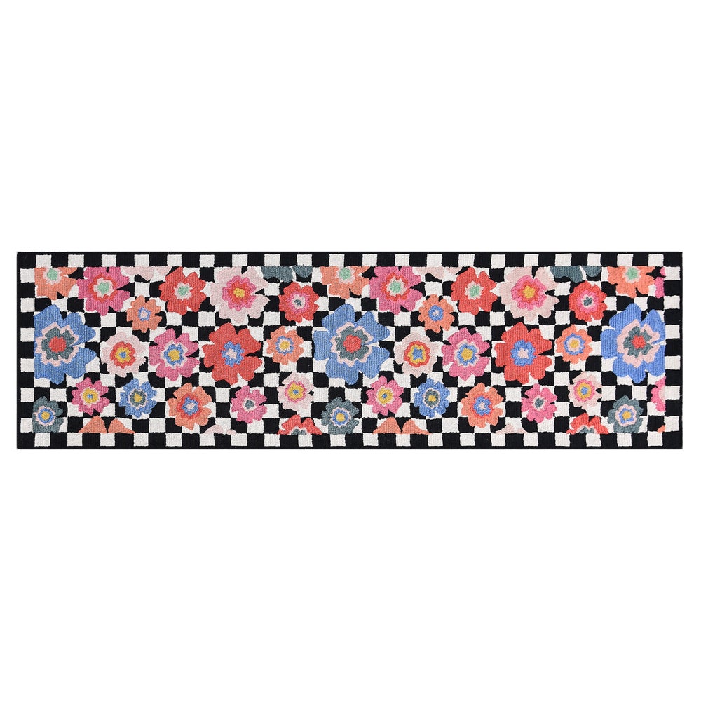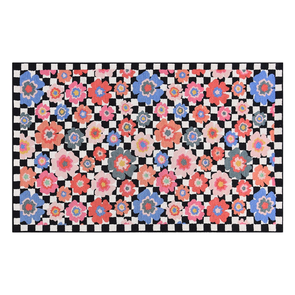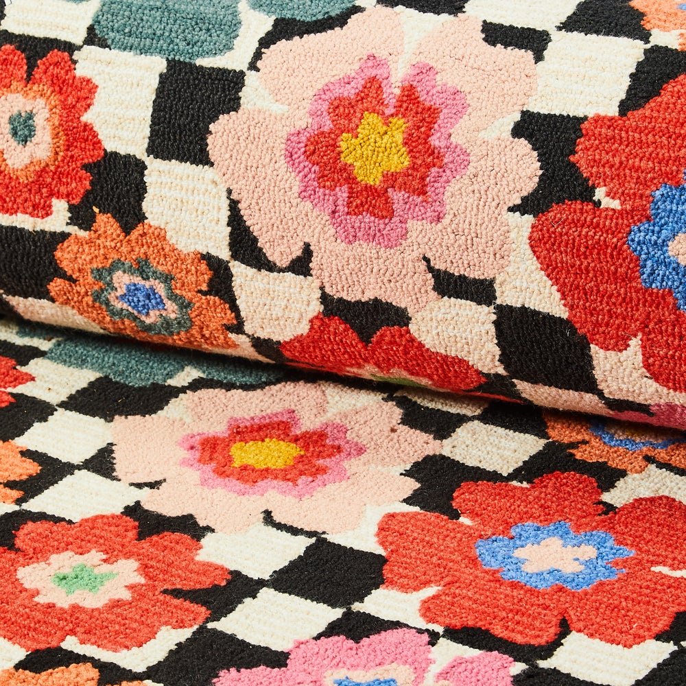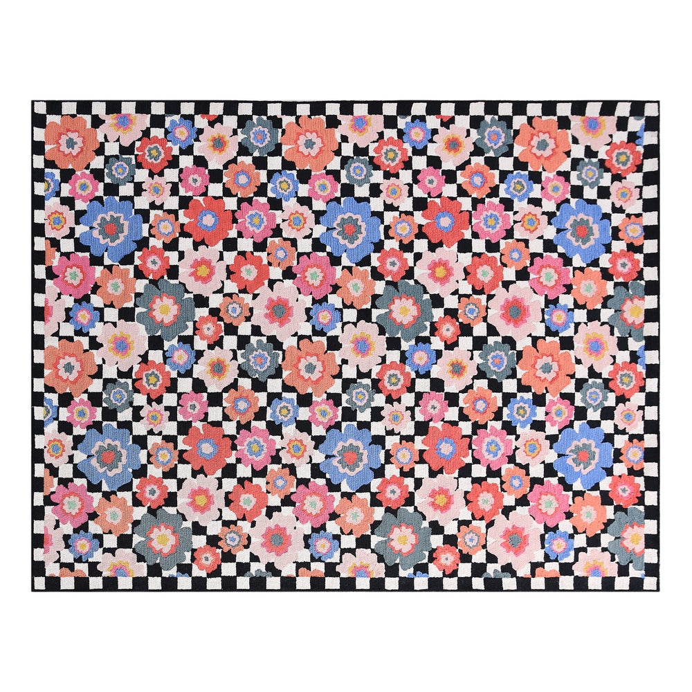 Put on a floor show with this Checked Dolce Vita Rug, featuring a woven polyester pattern of florals and checks. It can be used indoors or outdoors in a shaded or covered area with limited direct exposure to sunlight.
