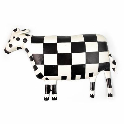 Make a moo-ving statement on your walls with this metal cow sculpture, hand-painted with checks.