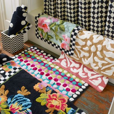 Drawing on the colors and whimsy of a verdant courtyard in the bohemian London district, it’s little wonder that the Chelsea Garden Bath Rug makes an en-suite feel like an oasis. Lush, graphic interpretations of heirloom flowering vines are framed in our signature Courtly Checks.