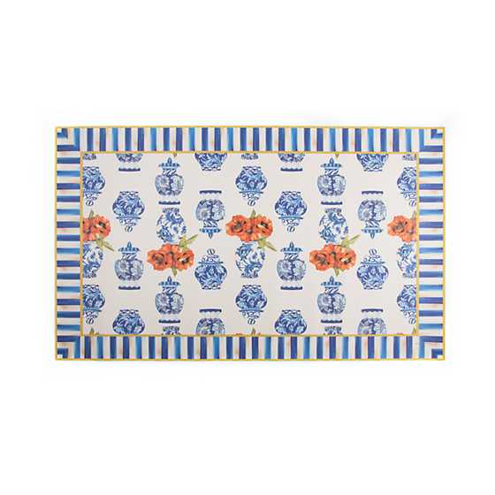 Faced with the decision between a utility mat that leans on its looks or one that performs without panache? With our 3′ × 5′ Chinoiserie Floor Mat, there’s no need to choose between beauty and function. Dressed with classic chinoiserie vases and ginger jars accented with orange poppies and bordered in Royal Stripe, it’s made of slip-resistant vinyl, lending a fashionable and durable touch to your floors.