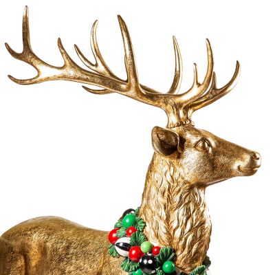 The Standing Christmas Magic Trophy Deer is worthy of first prize. This magnificent piece is dressed to impress in gold leaf from hoof to antler, wearing a collar of Courtly Check® with jolly ornaments finished with a Courtly Check bow. Place this in a protected area where it’s sure to get noticed and prepare for the rave reviews.