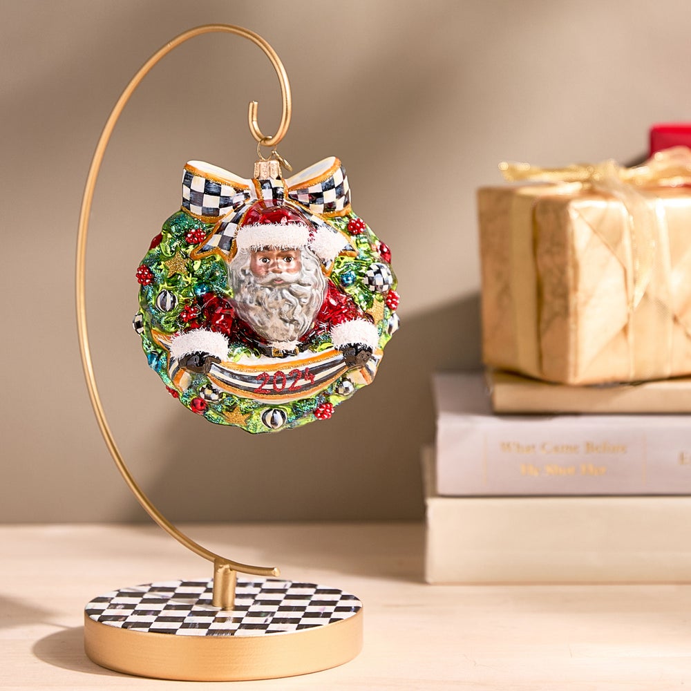 Display a special single ornament on this metal ornament stand that has a Courtly Check® base.
