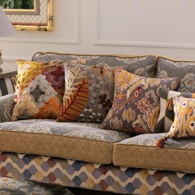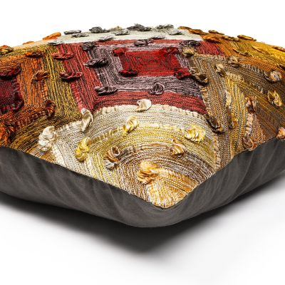 Add a touch of texture with this pillow, detailed with a machine-embroidered diamond pattern that’s accented with looped thread knots.