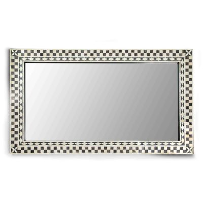 Reflect your style with this wall mirror, featuring an inlaid bone and resin pattern of checks and diamonds. It can be hung vertically or horizontally.