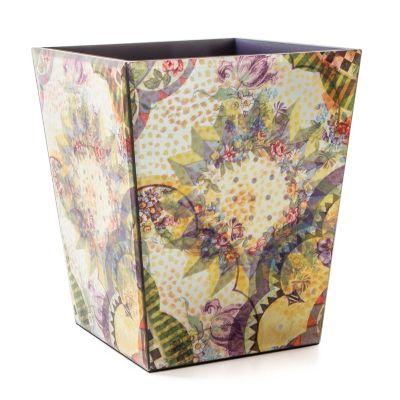 Make any room pretty with this waste bin, featuring an opalescent print of our legacy napkin patterns under glass, finished with beveled edges.