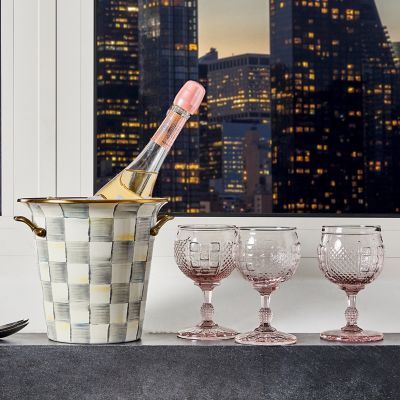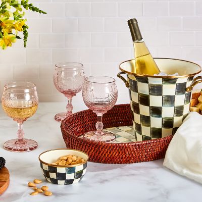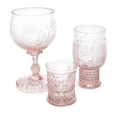 Everyday dining is extraordinary with the Coquette collection of glassware. The Pink Coquette Goblet is mouth-blown and molded with a pattern of diamonds, checks, and dots, with our thistle logo etched on the bottom. Mix and match the goblet with the other colors in the Coquette collection and pair it with our colorful dinnerware.