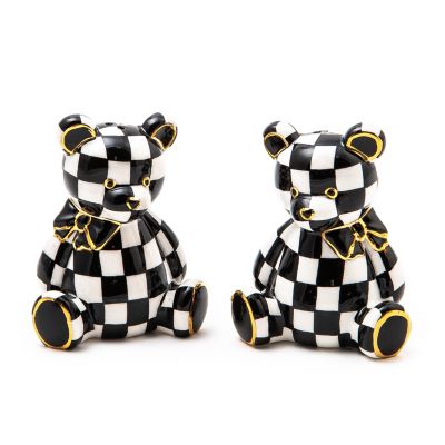 This two-piece ceramic bear salt and pepper set is hand-painted in black and white checks with gold lustre. Elegantly packaged, it makes a great gift, too.
