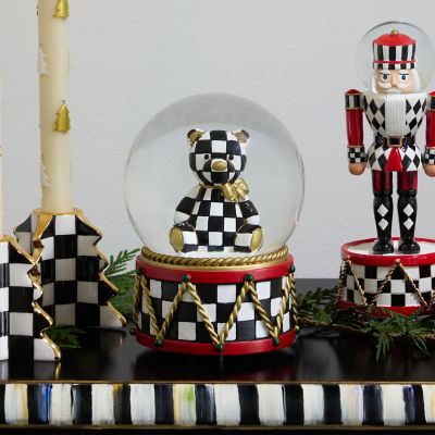 Our unique snow globes let it snow with style. This one features a checked bear atop a base that’s decorated like a drum, accented with checks and golden roping. It’s also a music box, and as the train circles the tree, it plays “We Wish You a Merry Christmas.”