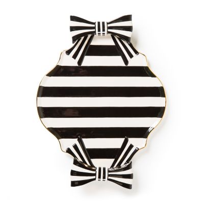 Add a pretty touch with the Courtly Bow Tray. Made of ceramic and decorated with dimensional striped bows on the handles, it’s trimmed with touches of gold lustre. Perfect for the dressing room for bottles of perfume or in the front entry to park papers and keys.