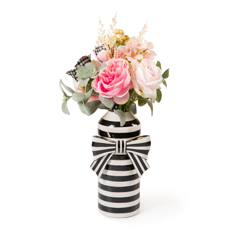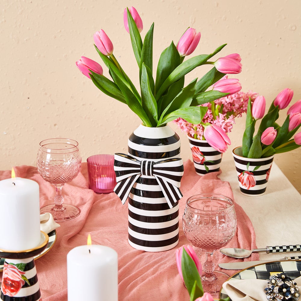 Elevate the ordinary vase with our chic Courtly Bow Vase. Made of ceramic and decorated with a dimensional striped bow, it’s trimmed with touches of gold lustre.