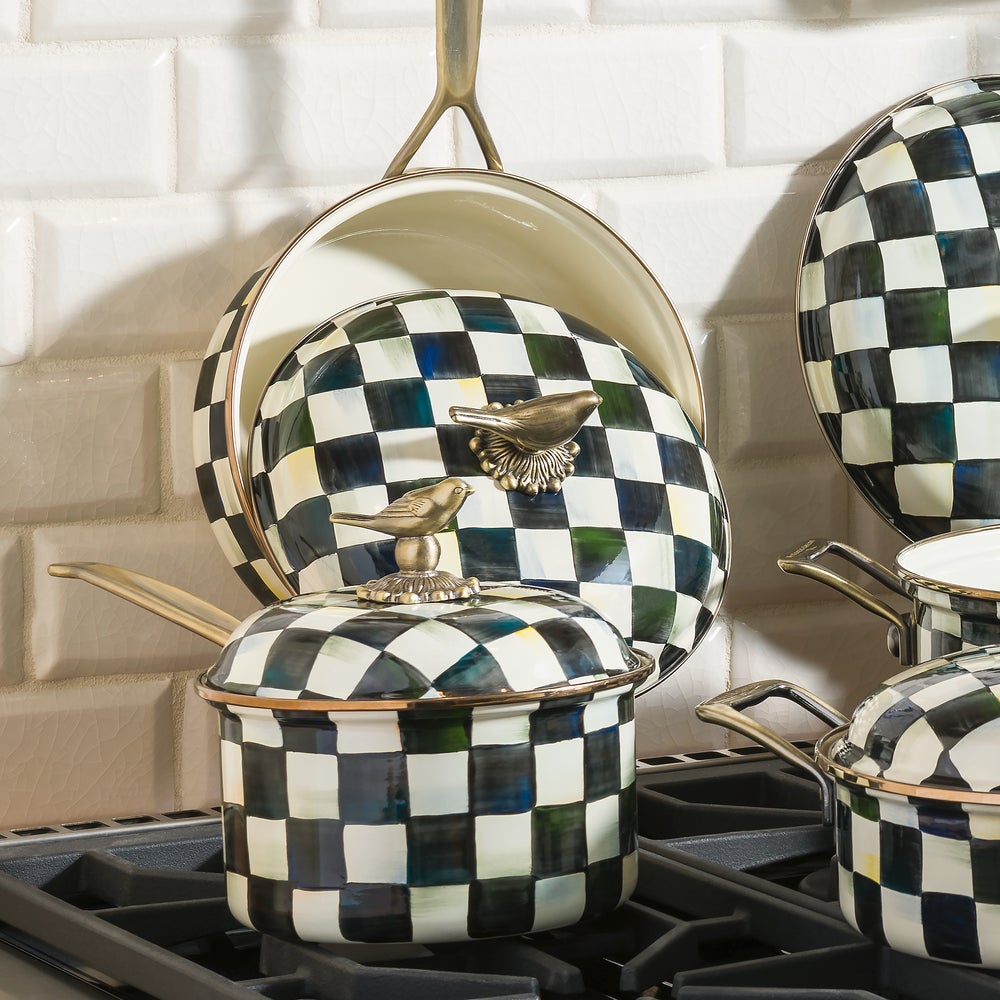 Cook up just a little bit of something in our Courtly Check Cookware. A core part of The Entertaining Kitchen™, imagine how your signature soups and stews will stand out when served up in a dish bedecked with our signature black and white pattern.