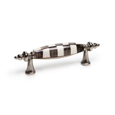 Add the finishing touch of MacKenzie-Childs to furniture and cabinets with our Nickel Courtly Check® Drawer Pull. This handsome nickel-finish metal handle features hand-painted ceramic Courtly Check on the center spread. Mounting hardware is included.